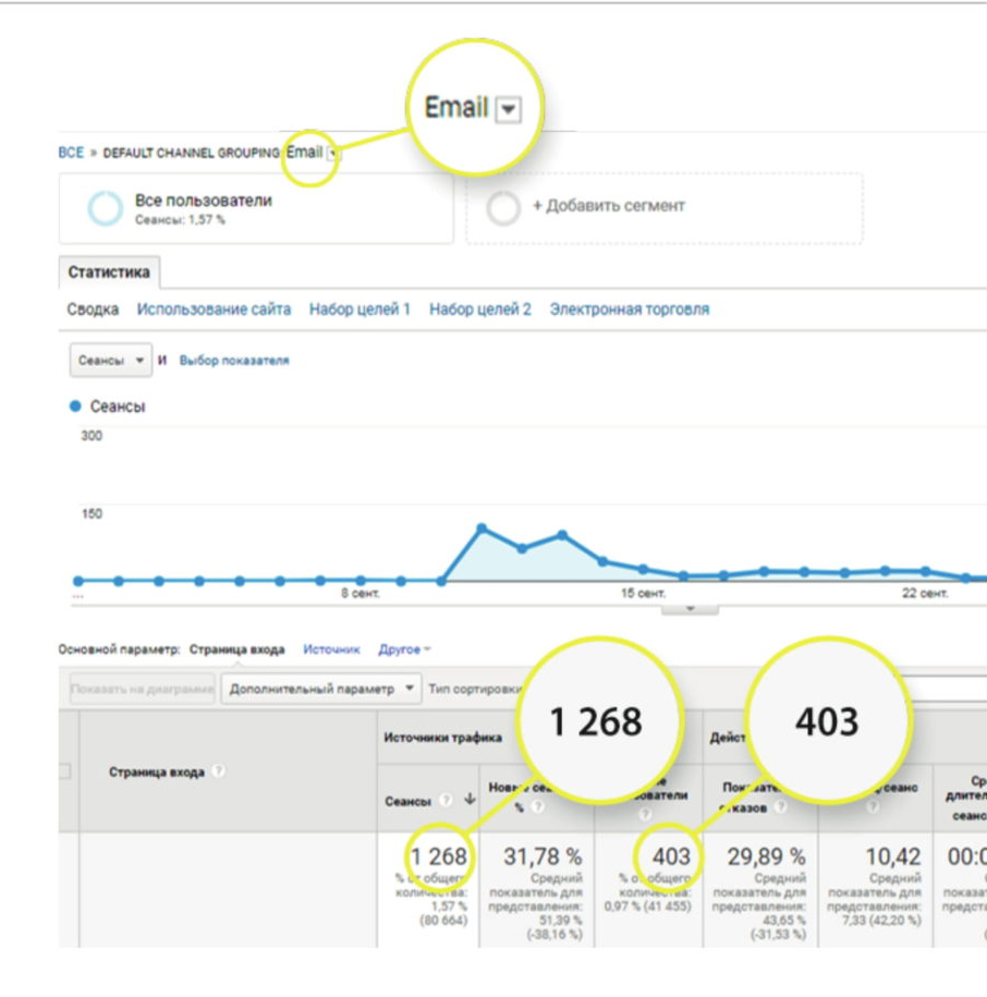 Простіше кажучи: За три місяці з вересня до грудня 2017 року наш сайт відвідали 7031 раз завдяки клікам на посилання в електронних листах. При цьому сайт відвідало 1087 унікальних користувачів.